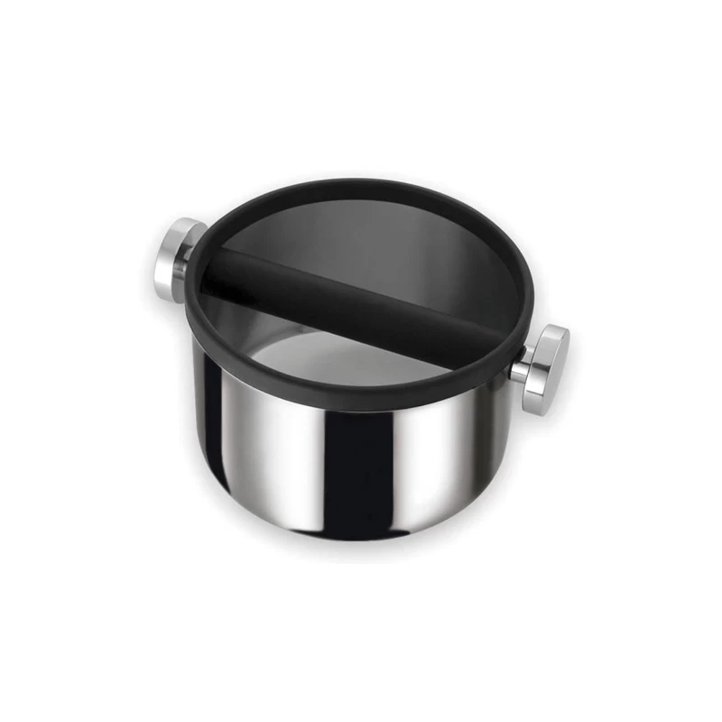 Der Abschlagbehälter vom italienischen Qualitätshersteller Motta überzeugt mit seiner hochwertigen Verarbeitung von besonders langlebigem und rostfreiem Edelstahl. Der Durchmesser des Abschlagbehälters beträgt 16,5 cm und die Höhe 11cm. Der Abschlagbalken, zum Ausklopfen des Espressosatzes, besteht aus hochwertigem Edelstahl inklusive Gummiüberzug. Der Überzug gewährleistet einen geräuschärmeren Abklopfprozess und schont die Oberfläche des Siebträgers. Die Reinigung der Abschlagbox ist einfach, der Abschlagbalken ist mit jeweils einer Schraube inklusive Drehgewinde am Korpus befestigt. Dieses ermöglicht ein leichtes herausnehmen des Abschlagbalkens im Reinigungsprozess. Weiterhin ist die Abschlagbox rutschfest, welches durch die Gummischicht an der Unterseite der Box gewährleistet wird.