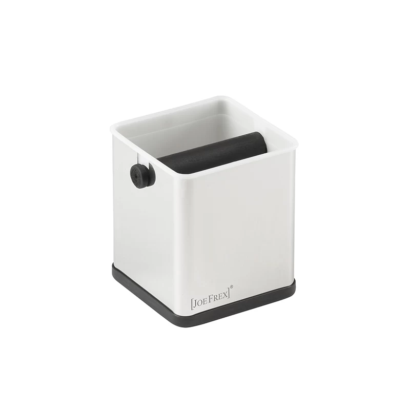 Die Firma JoeFrex besteht nunmehr seit über zwei Jahrzehnten und hat sich mit ihren ausgeklügelten Kaffee- und Espresso-Accessoires weltweit Renommee verschafft. In der fränkischen Manufaktur arbeiten Tüftler an der Konzeption von Tools, um die Zubereitung und den Genuss der anregenden Heißgetränke noch angenehmer zu gestalten. Der JoeFrex Abschlagbehälter Metal S stellt ein gutes Beispiel dafür dar, wie perfekt dieses ambitionierte Vorhaben gelingt. Der Abschlagbehälter erleichtert die Reinigung des Siebs mit Kaffee- beziehungsweise Espressopulver deutlich. In der Mitte des Kästchens wurde ein breiter Bolzen angebracht, auf dem sich das Sieb ausschlagen lässt. Auf diese Weise ist es im Nu wieder sauber und bereit für seinen nächsten Einsatz.