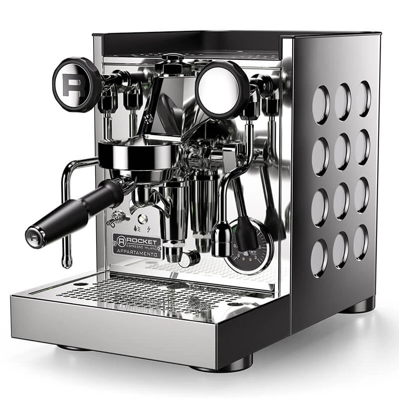 Möchten Sie eine Siebträgermaschine, die nicht nur perfekten Kaffee produziert, sondern auch ein echter Hingucker in deiner Küche ist? Dann ist die Rocket Appartamento TCA genau das Richtige für Sie! Mit ihren abgerundeten Seiten und sanften Kurven ist diese Maschine nicht nur ästhetisch ansprechend, sondern auch ein echtes Design-Statement. Die vertikale Ausrichtung des Rocket-Logos auf der Rückseite der Espressomaschine rundet das moderne Erscheinungsbild perfekt ab. Herausstechend sind die neu designten zwölf Kreise rechts und links an der Maschine. Sie wurden bei der TCA nochmals weiter in ihrer Prägung bearbeitet und wirken so noch dreidimensionaler und kommen somit noch besser zur Geltung.