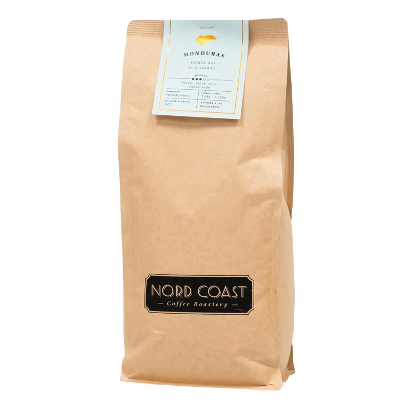 Comsa steht für Café Orgánico Macala S.A und ist eine Kooperative in Honduras. Die Kleinbauern der Kooperative produzieren ihre Kaffees ausschließlich biologisch und tragen das Fairtrade Siegel. Die Bohnen vom Comsa Bio von der Nord Coast Coffee Roastery kommen aus dem Hochgebirge von Honduras. Klima und hervorragende Böden sorgen für das tolle Aroma.