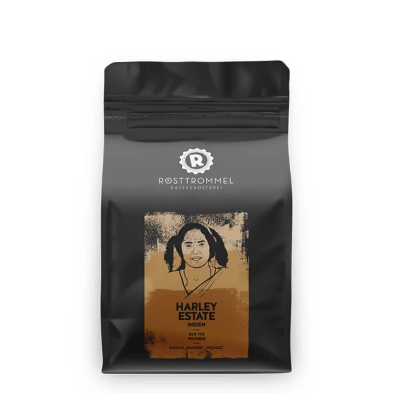 Der Harley Estate Espresso von der Rösterei Rösttrommel aus Nürnberg besteht zu 100 % aus Arabica Bohnen. Diese wurden in der Region Sakeshpur in Karnatake in Indien auf einer Höhe von ungefähr 1.000 Metern angebaut. Die Region ist sehr nährstoffreich und verfügt über natürliche Wasserquellen. Diese Bedingungen eignen sich hervorragend für den Anbau, daher wachsen direkt neben dem Kaffee auch Pfeffer, Kardamom und Kakao!
