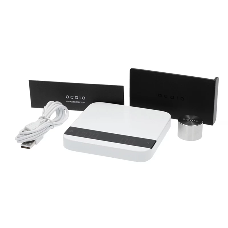 Die neue Acaia Lunar White reiht sich ein in die neuste Generation von Kaffee- und Espressowaagen aus dem Hause Acaia. Mit höchster Präzision, praktischen Features, einer modern-minimalistischen Designsprache und hochwertiger Verarbeitung edler Materialien haben sich die Waagen von Acaia längst als Platzhirsche im Feld der Premiumkaffeewaagen etabliert. Diese neue Generation der Lunar White baut auf Altbekanntem auf und bringt im Vergleich einige Aktualisierungen und Verbesserungen. So bietet der neue Real-time Flow-Rate Indicator die Möglichkeit, die Geschwindigkeit, mit welcher der Espresso in die Tasse läuft, anhand einer Punkteskala abzulesen. Ein weiteres neues Feature erlaubt das Speichern von Taragewichten. So kann das Gewicht vom Dosierbecher oder der Lieblingstasse abgespeichert werden, um den Workflow weiter zu beschleunigen und verbessern. Hardwareseitig hat sich auch etwas getan: Der Anschluss zum Laden des Akkus wurde von Micro-USB auf den aktuellen USB-C- Standard aktualisiert und das Display ist nun etwas heller.