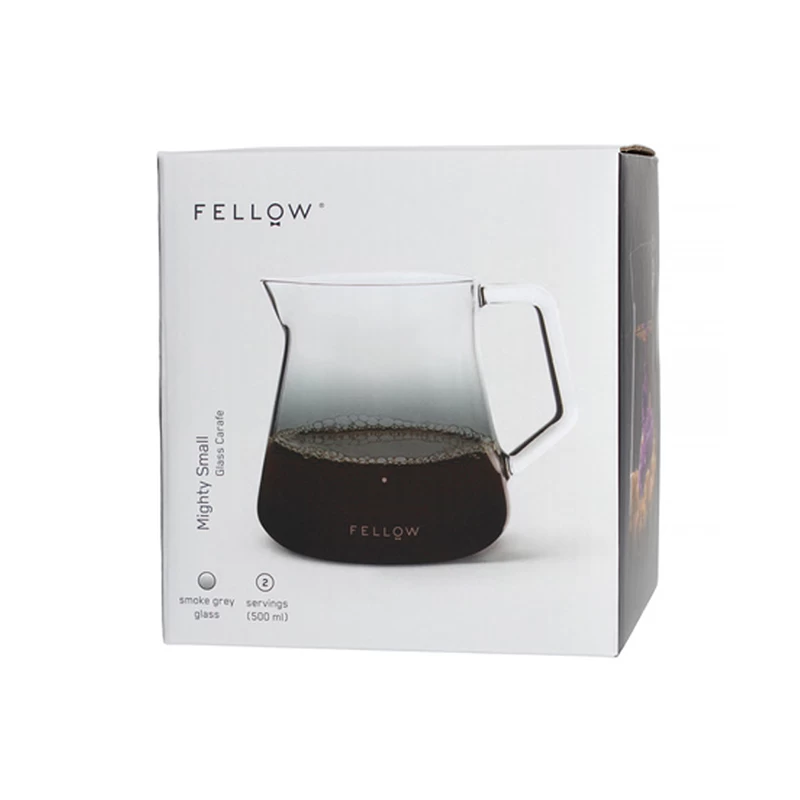Die „Mighty Small“ Glaskaraffe von Fellow besteht aus mundgeblasenem Borosilikatglas. Das Material ist nur 2 mm dick und trotzdem sehr widerstandsfähig. Zusätzlich verfügt das Borosilikatglas über eine gute Warmhaltefähigkeit. Auf der Karaffe ist ein kleiner Punkt zu sehen, welcher die Füllhöhe für 300 ml Kaffee markiert. Das maximale Füllvolumen wird von Fellow mit 500 ml angegeben. Das Leergewicht der Karaffe beträgt 250 g.