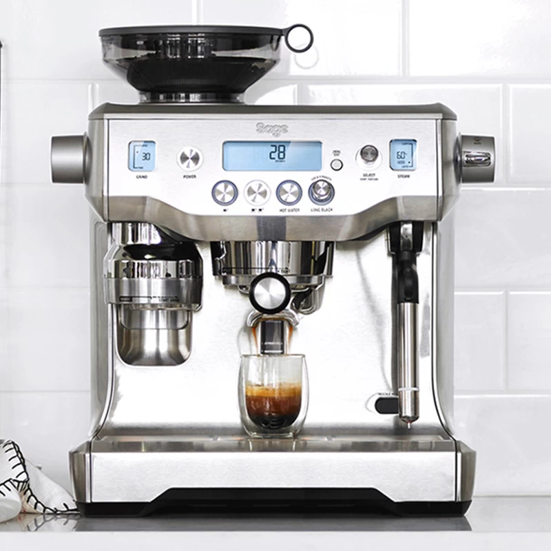 Die Oracle ™ von Sage ermöglicht Kaffeegenuss in allerbester Barista-Qualität und mit umfassendem Zubereitungskomfort. Die Fähigkeiten dieser Kombination aus Siebträgermaschine und Espressomühle erstrecken sich vom automatischen Mahlen und Dosieren über das Tampen und den gesteuerten Extraktionsprozess bis hin zu einer automatisierten Milchtexturierung. Der Bezug von Espresso und das Aufschäumen der Milch können dabei parallel stattfinden.