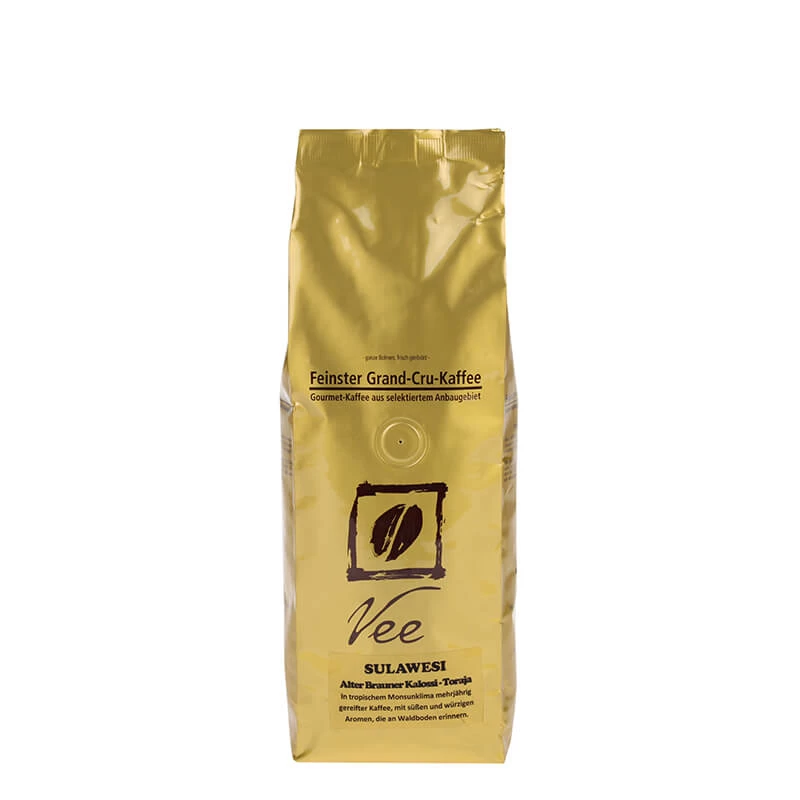 Die 100% Arabica-Kaffeebohnen des Sulawesi Kalossi Toraja sind eine echte Rarität. Sie stammen aus der Region Toraja in Sulawesi (früher Celebes), einer indonesischen Insel zwischen Borneo und Neuguinea. In der Stadt Kalosi werden die Kaffeebohnen gesammelt und anschließend über mehrere Jahre bei tropisch-feuchtem Klima und guter Luftzirkulation gelagert. Durch die natürliche Fermentation verliert der Kaffee seine Fruchtnote und verändert die Farbe. Nach der Röstung entsteht ein ausgesprochen aromatischer Kaffee mit einer tiefen Geschmacksfülle. Die süßen Anklänge erinnern an Ahornsirup, die herrlich würzigen Noten an üppigen Waldboden mit Anklängen von Pilzen, Herbstblätter und Moos sowie tropische Hölzer.