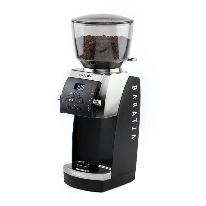Die Vario W+ von Baratza ist für all diejenigen gedacht, die bei der Zubereitung ihres Kaffees Wert auf höchste Präzision legen. Mit ihrer eingebauten Waage und der Genauigkeit auf 0,1 g wird die Portionsgröße direkt in Gramm gesteuert. Bei anderen Kaffeemühlen, so auch der Vario+ ohne den Zusatz W, geschieht dies lediglich über einen Timer. Auf diese Weise ist die Baratza Vario W+ hervorragend geeignet für alle, die genau wissen, wie viel Kaffeemehl sie für ihre Zubereitung benötigen. Im Vergleich zu der normalen Vario W bietet das Plus-Modell ein verbessertes Bedienfeld und Display, sowie auf Filterkaffee spezialisierte Mahlscheiben des Schweizer Herstellers Ditting aus Stahl, statt Keramik. Zudem ist die Mahlwerkskammer nun aus Metall gefertigt und der Auswurfbereich wird von LEDs beleuchtet.