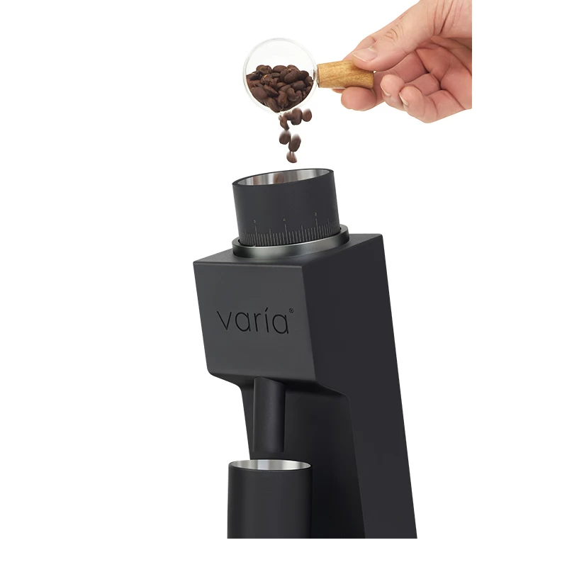 Die VS3-Mühle von Varia im edlen Schwarz ist das ultimative Werkzeug für alle, die ihre Espresso und Filterkaffeezubereitungen auf ein neues Level bringen möchten. Mit der Varia VS3 erleben Sie eine einzigartige Kombination aus Präzision und Geschwindigkeit. Die neue Motorkonstruktion mit Edelstahlgetriebe liefert eine Mahlgeschwindigkeit von 190 U/min für Espresso- und Filtereinstellungen. Das Gehäuse aus einer druckgegossenen Aluminiumlegierung in Weltraumqualität sorgt für eine extreme Robustheit und Langlebigkeit des Geräts. Verpassen Sie nicht, perfekten Kaffeegenuss zu Hause zu erleben!